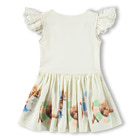 Cimi Kjole - Beach Fun fra Molo er en sød sommerkjole i blød bomuld. Kjolen har fine flæser på ærmerne og et sjovt print med strandmotiver og søde dyr på skørtet. Perfekt til leg og fest!