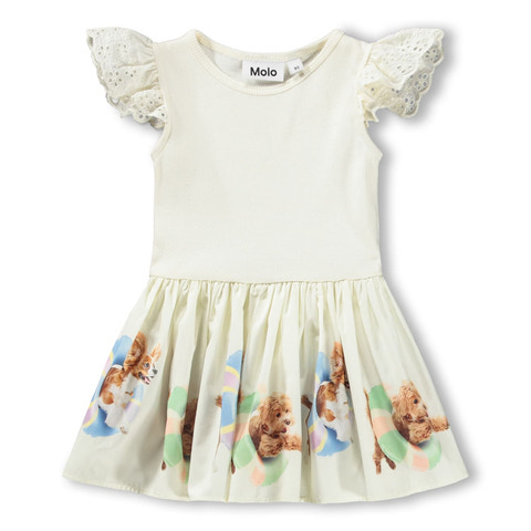 kundeservice@pixizoo.dkCimi Kjole - Beach Fun fra Molo er en sød sommerkjole i blød bomuld. Kjolen har fine flæser på ærmerne og et sjovt print med strandmotiver og søde dyr på skørtet. Perfekt til leg og fest!