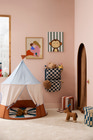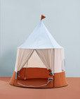 Cirkusteltet er det perfekte tilbehør til børneværelset eller stuen, hvor det inviterer til timevis af leg og fordybelse. Med sit charmerende cirkuslook og de bløde farver skaber teltet en eventyrlig stemning, hvor børn kan slippe fantasien løs - hvad enten det er som cirkusartist, tryllekunstner eller bare til en hyggelig læsehule. Teltet er rummeligt og har åbning foran, så det er nemt at kravle ind og ud, og de små vinduer i siderne giver både lys og mulighed for at holde øje med omgivelserne. Det er let at sætte op og tage ned, så det kan flyttes rundt efter behov eller pakkes væk, når det ikke er i brug. Teltet er lavet i slidstærke materialer, der tåler mange timers leg, og det bløde gulv gør det ekstra behageligt at sidde eller ligge i. Perfekt til både leg, afslapning og som et hyggeligt gemmested, hvor barnet kan få lidt ro fra hverdagens mange indtryk. Mål: Diameter: 115, Højde: 120 cm. Velegnet til indendørs og udendørs brug - husk, det skal stå i læ og tages ind igen bagefter. Materiale: 100% Polyester, stål. Godkendt iht. EN71-CE. Anbefalet alder: Fra 24 måneder
