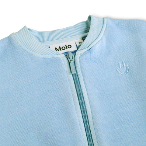 Dazzle Sweater fra Molo er en blød og behagelig trøje i bomuld, perfekt til børn. Den har en flot lyseblå farve og praktisk lynlås, så den er nem at tage af og på. Sweateren har ribkanter og et enkelt design, der passer til alle lejligheder.