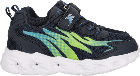 Gukal Sneakers m. Lys fra ZIG ZAG er det perfekte valg til børn, der elsker fart over feltet og masser af sjov. Skoene har en smart navy farve med seje grønne flammer på siden, som giver et energisk og moderne udtryk. Den bløde og lette sål har indbyggede lys, der blinker, når barnet går eller løber - det gør dem ekstra populære på legepladsen og til hverdag. Skoene er designet med både velcrolukning og elastiksnøre, så de er nemme for barnet selv at tage af og på, og sidder godt på foden. Overdelen er lavet i åndbart mesh og syntetisk materiale, hvilket sikrer god komfort og ventilation hele dagen. Indersålen er blød og støttende, så barnet kan bevæge sig frit og komfortabelt. Gukal Sneakers m. Lys er et hit og de flotte farver og blinkende lys gør dem til en favorit blandt børnene.