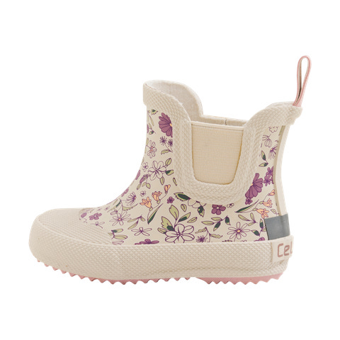 Lave gummistøvler med all over print fra CeLaVi. Gummistøvlerne er lavet i naturgummi og har en refleksstribe bagpå. Der anbefales et voksetillæg på 1 1/2 cm.