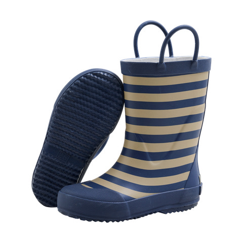 Gummistøvler med striber fra CeLaVi. Gummistøvlerne er lavet i naturgummi og har en refleksstribe bagpå. Der anbefales et voksetillæg på 1 1/2 cm.