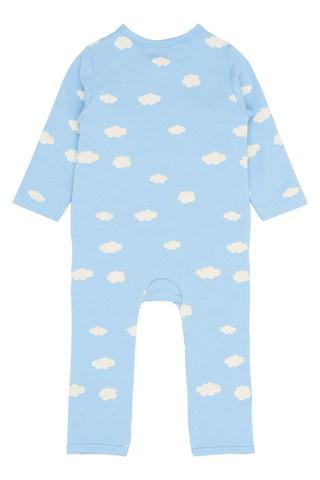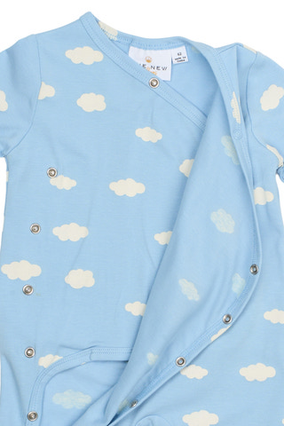 Paco Wrap heldragt i farven Powder blue fra The New Siblings er en skøn og komfortabel heldragt til de mindste. Dragten er lavet i en blød og behagelig kvalitet, der føles rar mod barnets hud. Det søde skyprint i lyseblå og hvide nuancer giver et roligt og hyggeligt udtryk. Wrap-lukningen med trykknapper hele vejen ned gør det nemt at klæde barnet på og af, hvilket især er praktisk ved bleskift. Heldragten har lange ærmer og ben, så barnet holdes dejligt varmt, og den er ideel både til dag og nat. Perfekt til både nyfødte og små tumlinger, der skal have det ekstra behageligt.