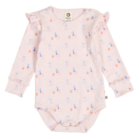 kundeservice@pixizoo.dkSød Picnic Rib Flæse Body fra Müsli i farverne Primrose, Shell blue og Tofu. Bodyen er lavet i blød og strækbar kvalitet af 95% bomuld og 5% elastan, som giver god komfort til dit barn. De fine flæser på skuldrene og det søde print gør bodyen ekstra charmerende. Perfekt til både hverdag og fest!