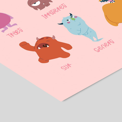 Plakat - De Tolv Følelser Pink 50x70 fra Poster & Frame hjælper børn med at sætte ord på deres følelser. De søde figurer gør det sjovt og nemt at tale om glæde, tristhed, nervøsitet og meget mere. Perfekt til børneværelset! • Lærerige illustrationer • Farverigt og venligt design • Størrelse: 50x70 cm • Skaber tryghed og samtale