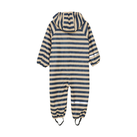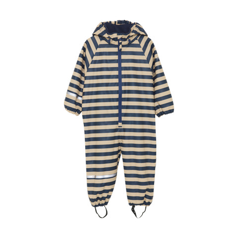 Regndragt i PU fra CeLaVi med et flot all‑over print. Dragten er udstyret med smalle refleksstriber på den ene arm og det ene ben for øget synlighed. Logoet er refleksprintet både øverst på den ene arm og på bagsiden af hætten.